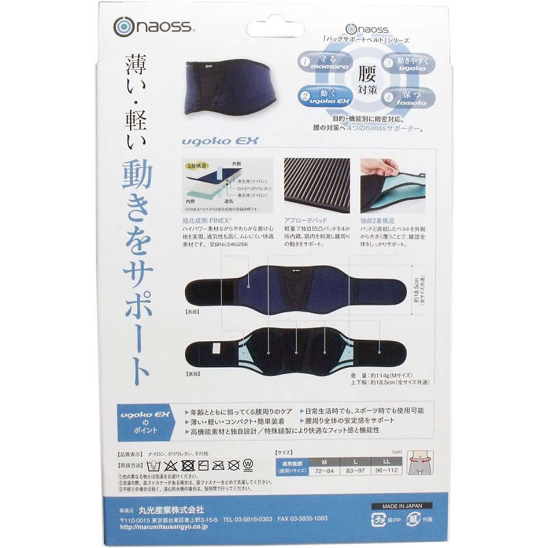 軽量で独自凸凹パッドを4カ所内蔵。筋肉を刺激し腰周りの動きをサポートします。