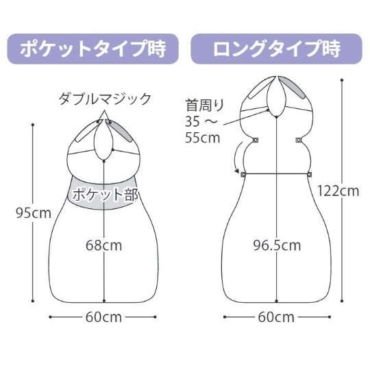 ポケットタイプ使用時:総丈95cmx着丈68cmx幅60cm