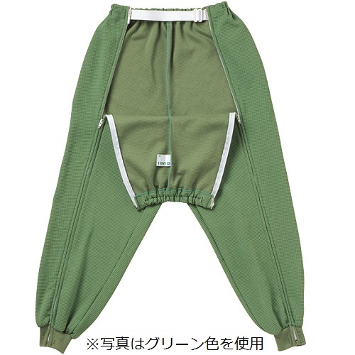 【入院】【車椅子】【介護】 裾リブ付き全開ズボン:グリーン